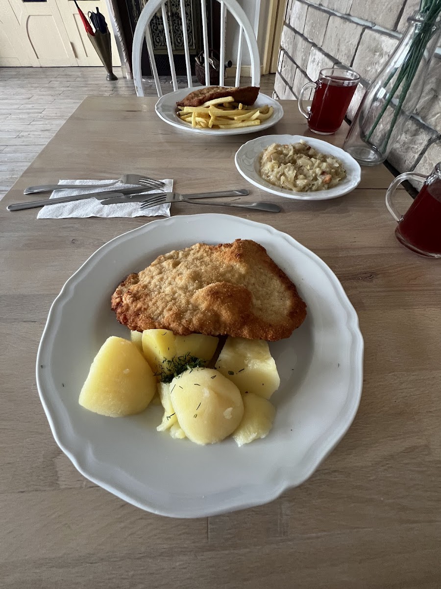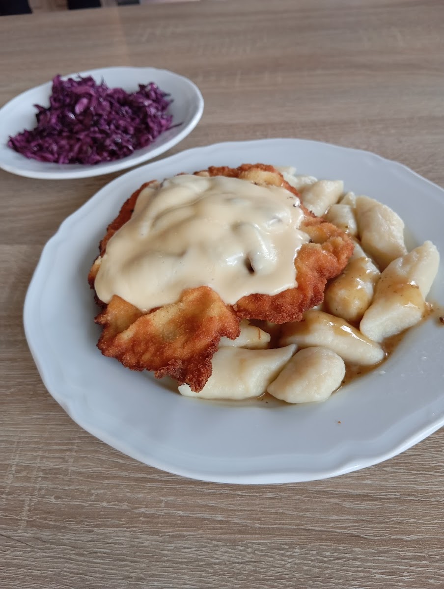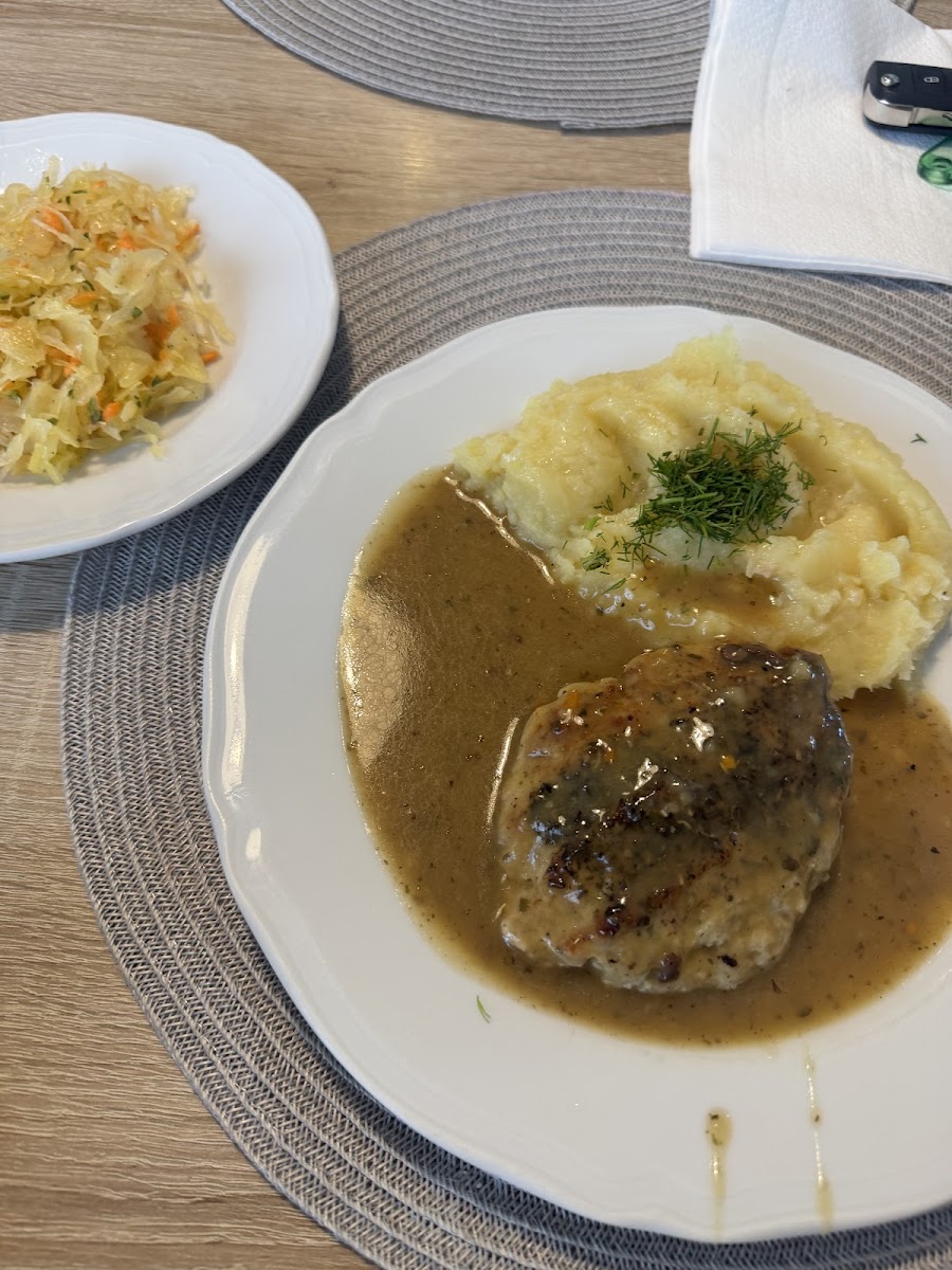 Bardzo smaczne, domowe jedzenie. Kopytka przepyszne. Do poprawy jedynie surówka, kapusta czerwona przesłodzona niestety. W sobotę bardzo duży ruch, ale mimo to czas oczekiwania był ok. Sporo miejsca w lokalu, jest kilka sal że stolikami, czysto i jasno. Menu leży na stoliku przy wejściu. Wjazd trochę ukryty, ale za to jest parking.